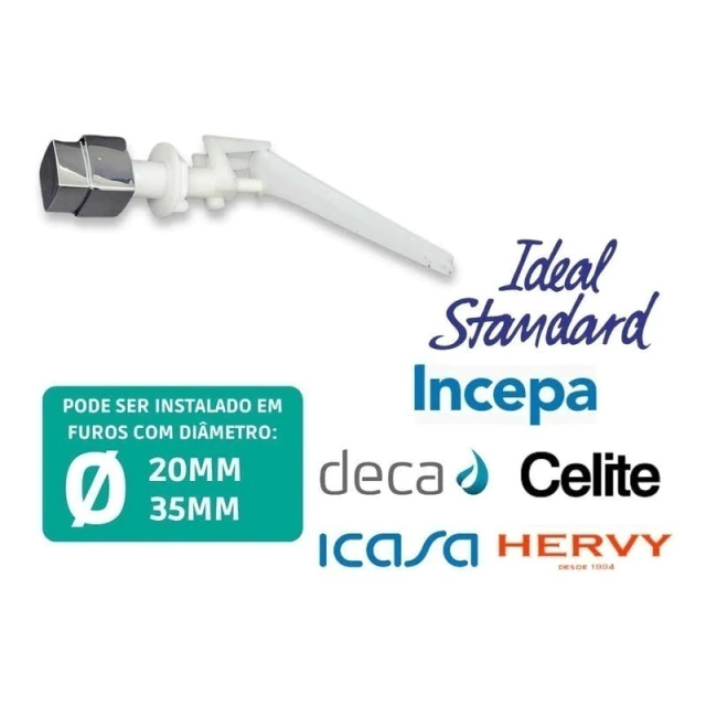 Botão de acionamento simples de descarga. Instalado na parte lateral da caixa acoplada. Acionamento tipo lateral externo.