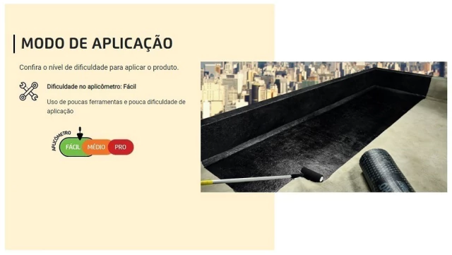 ✅ Secagem rápida: reduz o tempo entre a imprimação e a aplicação da manta.