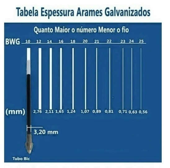 Malha 3" (7,62 cm) e fio 1,80 mm.