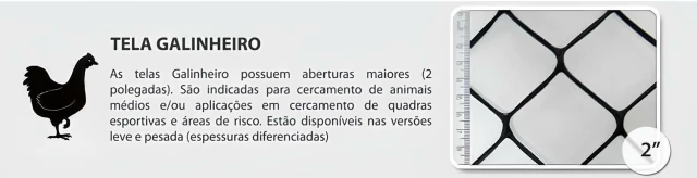 Malha de 2" (5 cm), ideal para aves e pequenas criações.