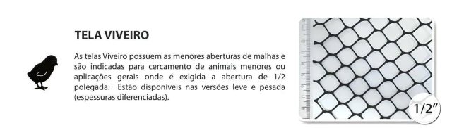 Linha/Aplicação: Viveiro (proteção de aves pequenas e cercamentos leves)